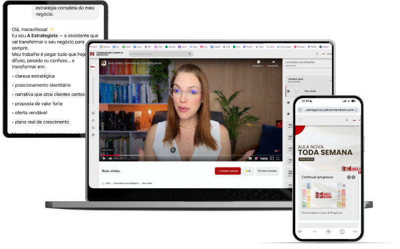 A Comunidade Livros & Negócios™ é uma plataforma de educação estratégica que ajuda profissionais que vivem do próprio conhecimento a pararem de tentar sem sucesso e construírem um negócio claro, organizado e lucrativo, usando os livros certos, aplicados do jeito certo, através de aulas semanais e grupo de networking.